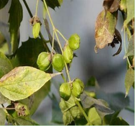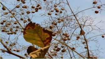 A small deciduous tree with drooping four – angle branchlets. Bark pale or dark grey in colour , sometimes greenish, rough and wrinkled. Leaves in opposite pairs, dark green, very rough on upper surface, paler and hairy below, margins of ten large with distant teeth and pointed apex. Flowers are white in colour with 5 to 8 petals at the end of bright orange tubes in clusters and are highly fragmented. Fruits are flat, with round capsules bright green at first and later turning brown. Leaves sheds in February and March and renew in June and July. Flowering occurs in August with peaking in September, October. Fruits ripped in April and May.
