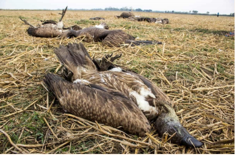 o Poisoned carcasses: As an attempt to curb the population of certain local animals the carcasses of cattle are poisoned, but this victimises vultures instead when they feed to them.
